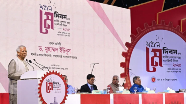 বৃহস্পতিবার (১ মে) মহান মে দিবস ও জাতীয় পেশাগত স্বাস্থ্য ও সেফটি দিবস উপলক্ষে বাংলাদেশ-চীন মৈত্রী সম্মেলন কেন্দ্রে এক বিশেষ আলোচনা অনুষ্ঠানে অন্তর্বর্তী সরকারের প্রধান উপদেষ্টা অধ্যাপক ড. মুহাম্মদ ইউনূস